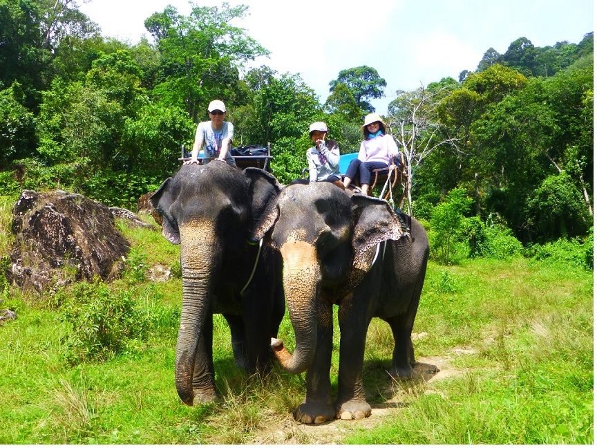 子象と触れ合えること、ここの体験談から、このツアーを選択しました。ホテルから翌日分を親子3人で予約、出発の時間も選択できて、予約から正式受付までが非常にスピーディーに完了してびっくり。現地からの申し込みのため、予約券の印刷ができませんでしたが、ホテルにファックスが入っていました。送迎は私たち家族だけで寄り道もなく快適でした。予約確認のメールに、軽装でサンダルでもよいとの情報があり、服装の不安もなく参加できました。子象との触れ合いは、子象が少し大きかった(と言っても妻の背丈ほど)ことと、あり余り自由には触れられなかったことは残念ですが、自分のカメラで子象に絡まれている写真を撮ってくれてました。象のトレッキングは、親子3人で1頭かと思いましたが、2頭に分乗して出発、ゆったりの山に入っていきます。子供が落ちないかと心配していましたが、急な上り下りも、人を気遣う様な足取りでゆっくり進みます。平地では、象使いは降りて、代わりに頭に乗せてもらい、歩きながらたくさんの写真も撮ってもらいました。気さくで明るい象使いと話をしながら、1時間は、あっという間に終わってしまいました。