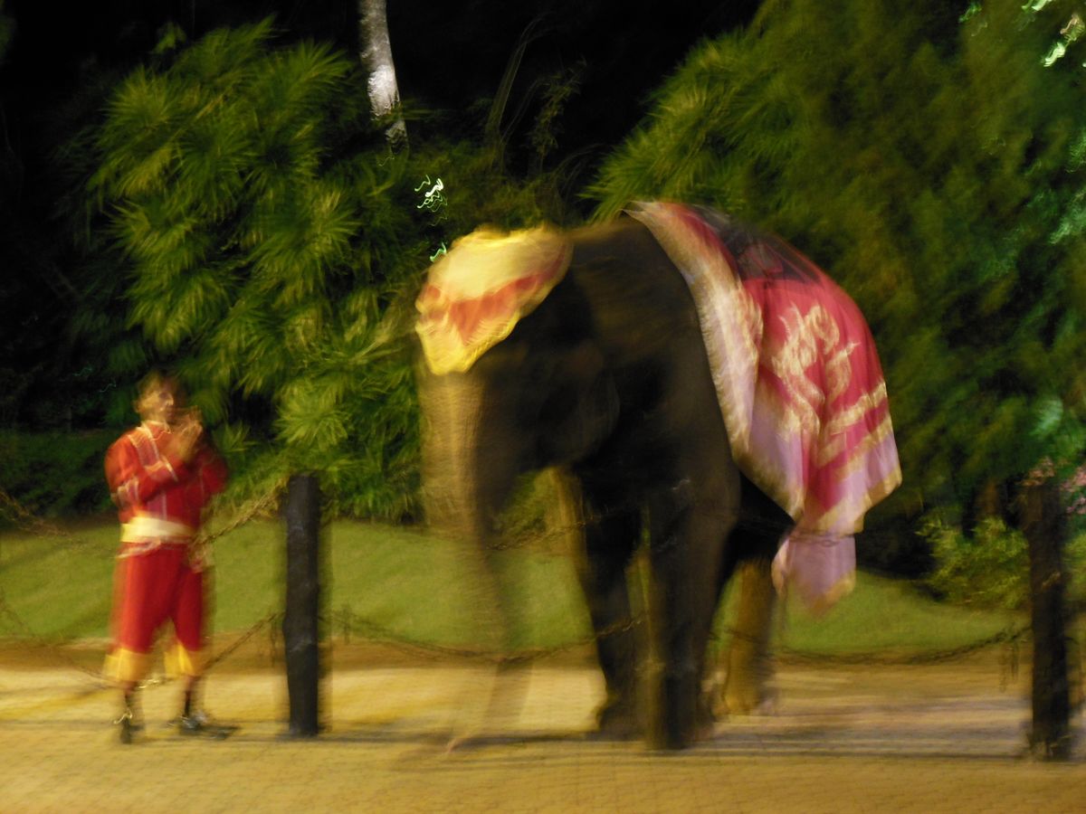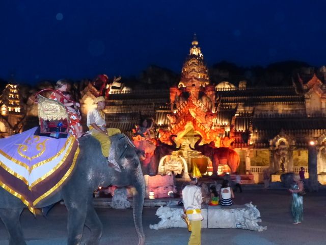 ホワイトタイガーを見たり、象と写真を撮ったりした後に、ビュッフェの食事をし、いよいよショータイムです。