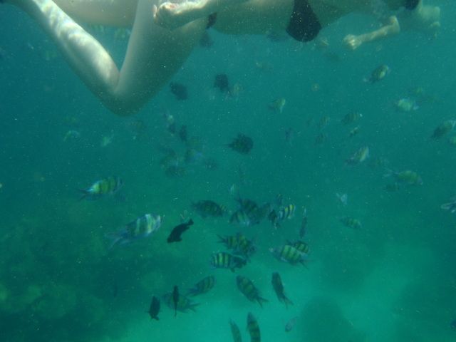 シュノーケリングは、岩場の近くに行ってみてください。いろんな魚がいて楽しめます。(晴れている時限定かもしれませんが)