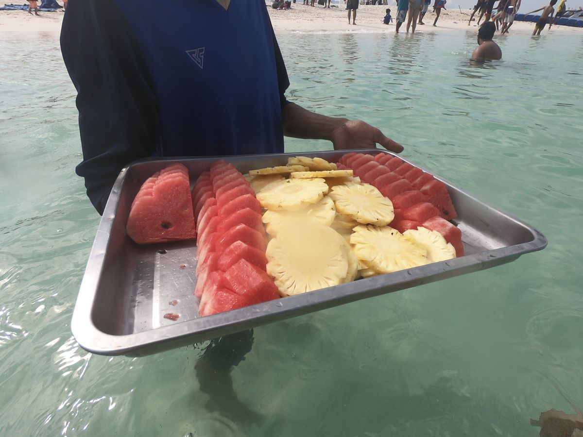 ランチもおいしくいただき、気温が高くてさっぱりしたフルーツを欲していたので、カイ島でパイナップルやスイカなどボートスタッフが持ってきてくれたのは最高でした!