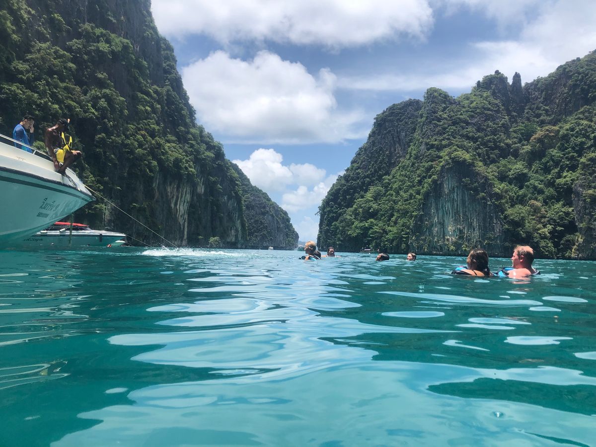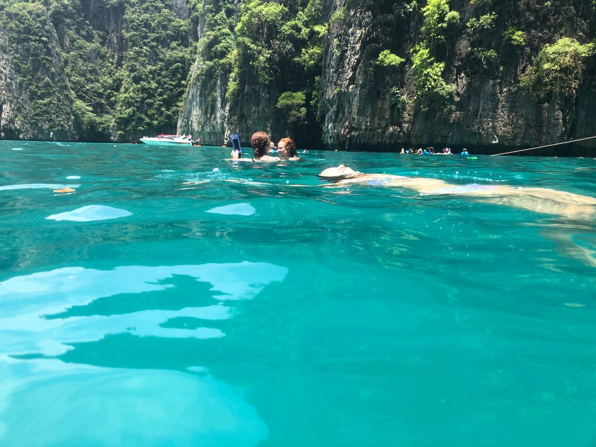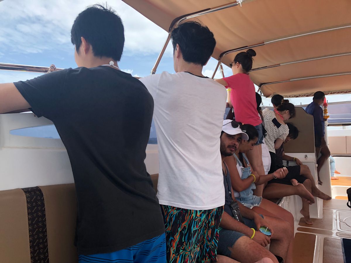 天気が悪いと言われてましたが、運良くあまり雨に降られずツアーを体験することができました。スピードボードで酔う可能性が高いと前もって聞いていたので、酔い止めを飲んでいきましたが、ガイドさんの指示で立ちながら乗ったら、全く酔わず、アトラクションのようにボードに乗っている時間を楽しめました。なので、ボードのアトラクション感を楽しめる人はそこまで酔うことを心配しなくてもいいと思います。ただボードに乗ってる時間はピピ島まで1時間、他の島に回るのに20〜40分と長いので、しんどいです。船内では水、オレンジジュース、コーラが飲み放題で、パイナップルとスイカも配られました。お昼ご飯はバイキング形式でしたが、あまり種類はなかったです。味付けも辛めでした。なので、あまりご飯には期待しない方がいいです。