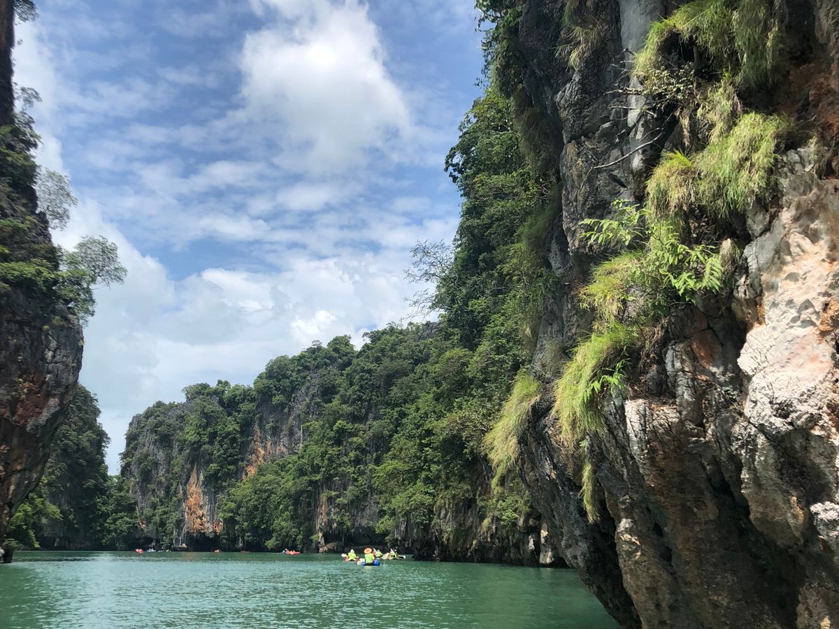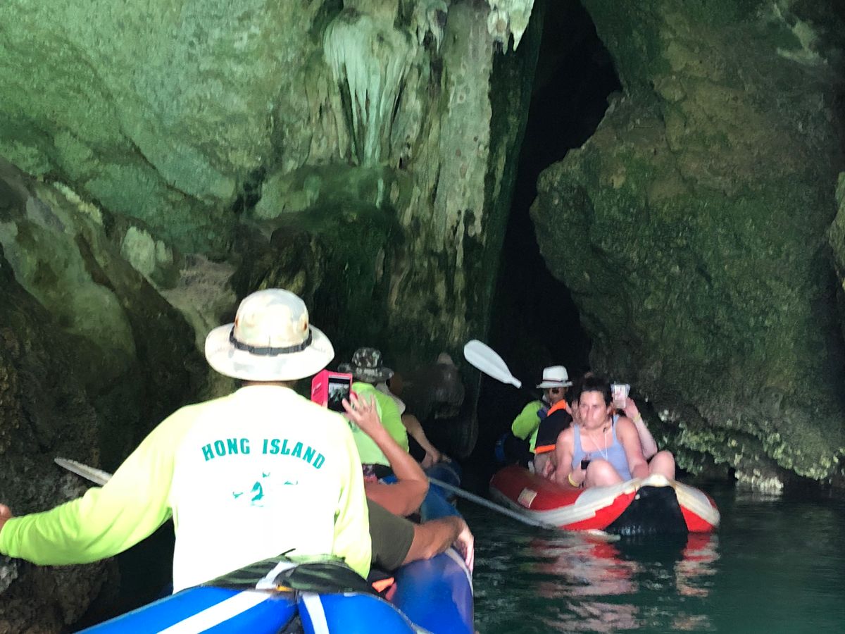 リゾートアイランドのそのまた離島に巡るツアーです、洞窟を歩きカヤックに乗り水上ランチジェームズボンド島そして海水浴とあっとゆう間に1日が過ぎて行きます。