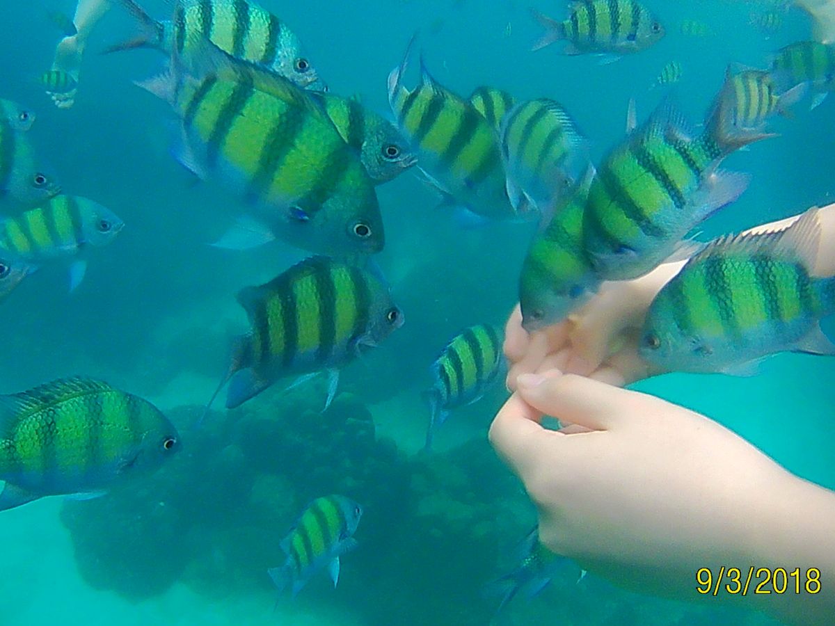 当日は天候もそこそこで、ボートにも酔わずご移動いただけたとのこと、安心いたしました。全体的にはご満足いただけて光栄です。美しい手に群がる魚たちの可愛らしい写真もありがとうございました!