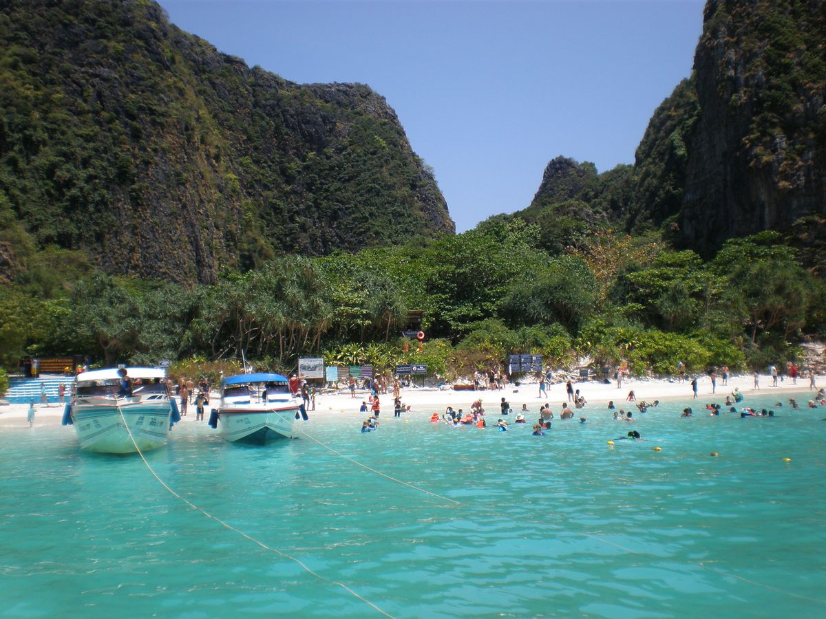 こちら日中のツアーですと数多くのスピードボートの会社がお客様をピピ島にお連れします。