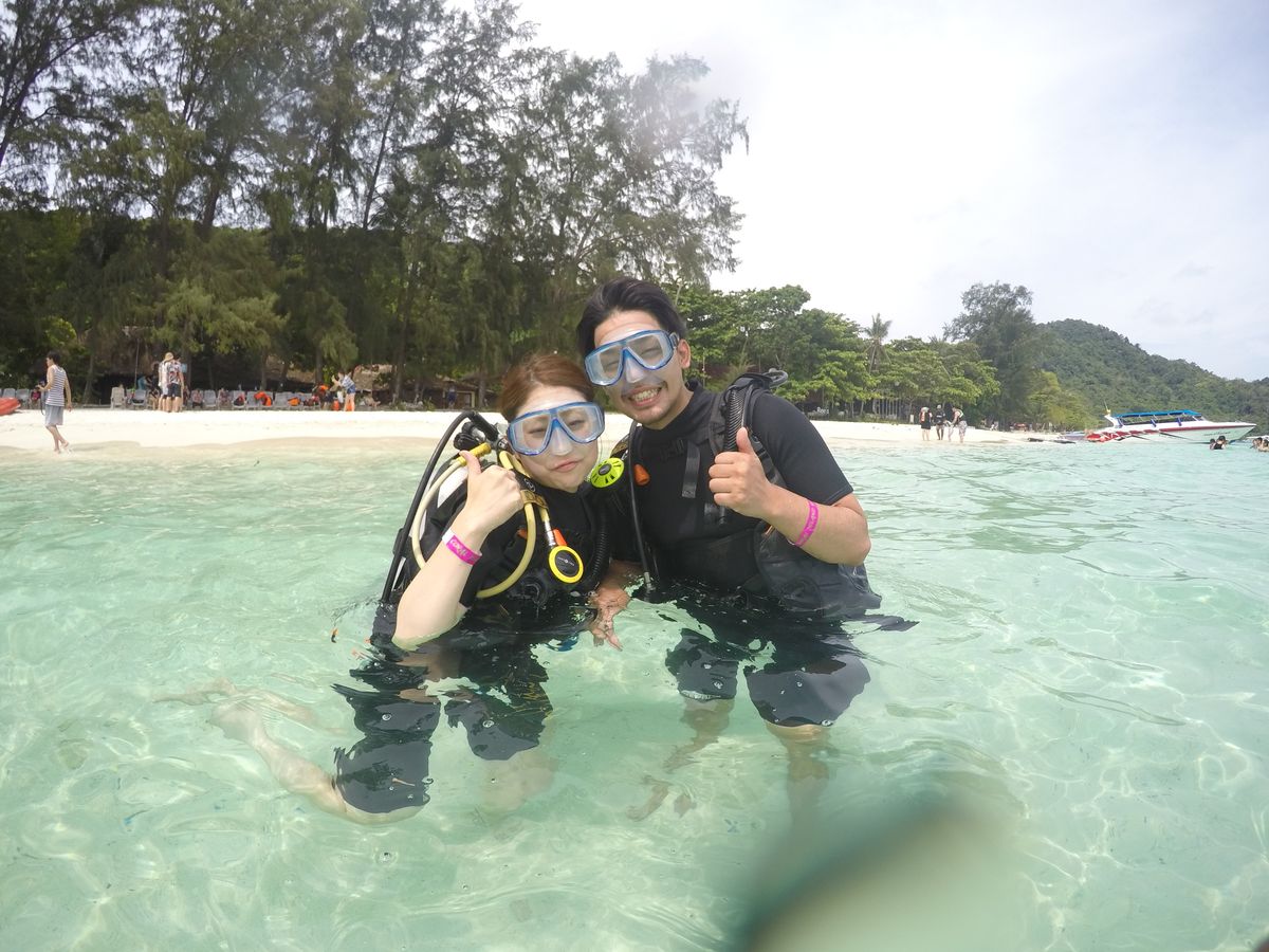 ゴールデンウィークを利用して体験ダイブに参加しました。インストラクターのタケシさんは丁寧でユーモアもありはじめての方でも安心してダイビングにチャレンジ出来るでしょう!現地ガイドのアンさんもノリが良くいいリゾート体験をサポートしてくれ最高でした。コラール島はプーケットの港から船で15分程度でダイビングも浜からするので船酔いの心配もなく安心。ランチも島で取れるので体に負担は無し。ただ海は透明度は高いですがサンゴは少なく熱帯魚等の魚は少なめ。カメ、マンタどの主役もいません。体験ダイブでも経験者には物足りないかも。行くならキレイなビーチ満喫メインでダイビングはついででおもっておくくらいが良いでしょう。