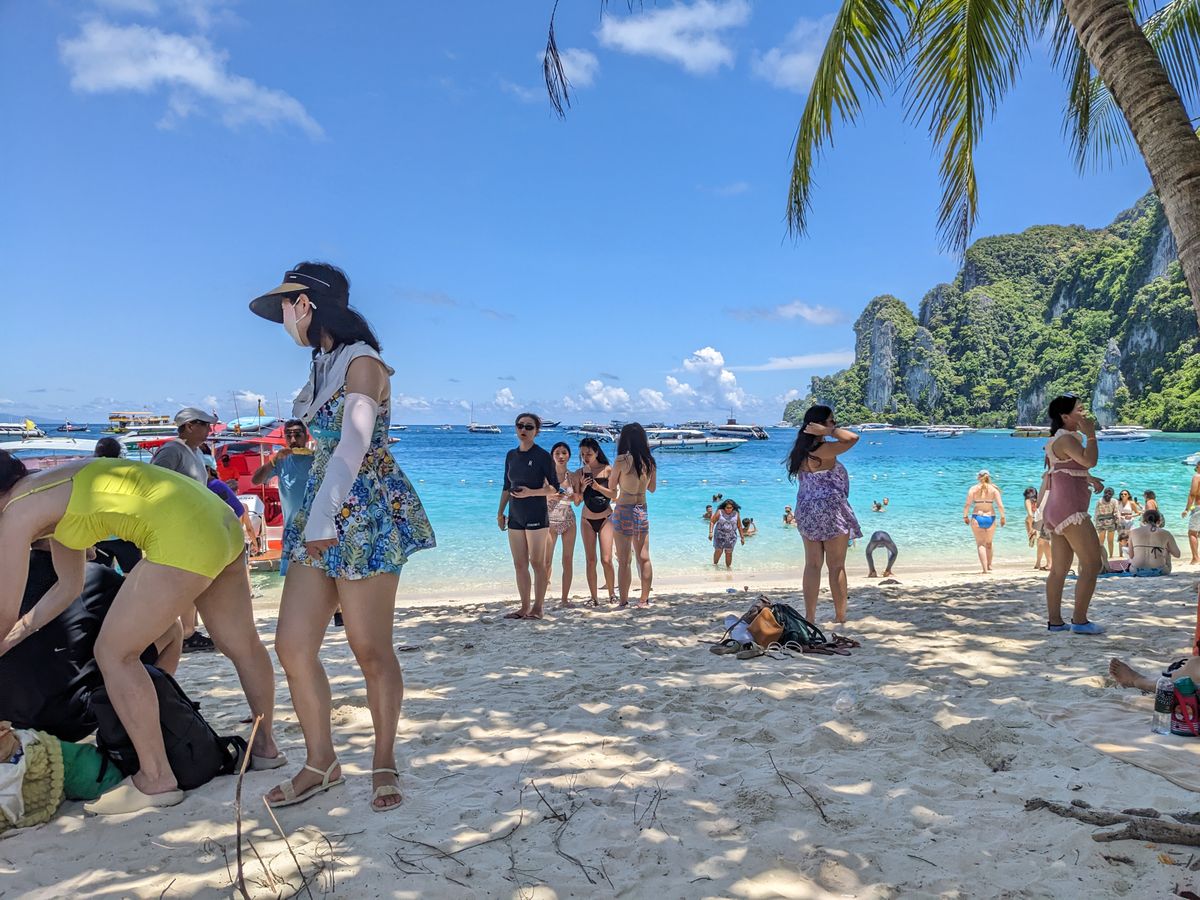 マヤベイは見た島々の中で一番美しかった。遊泳はできなかったが白砂が細かくきれいで裸足で歩くと気持ちが良かった。