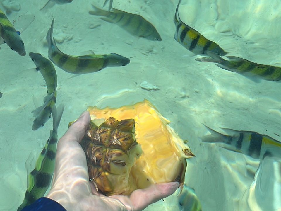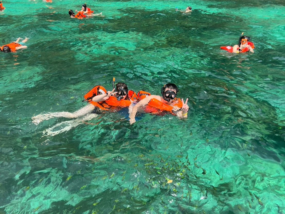 雨季に入りかけだったので、天気が心配でしたが、晴れてくれて、海がエメラルドグリーンでした。シュノーケルは、ガイドさんが餌を蒔いてくれたので、魚も目の前で泳いでて感動。シュノーケルが苦手な方は船で、過ごしても楽しめます。ガイドさんが写真たくさん撮ってくれました。また機会があれば参加したいです。