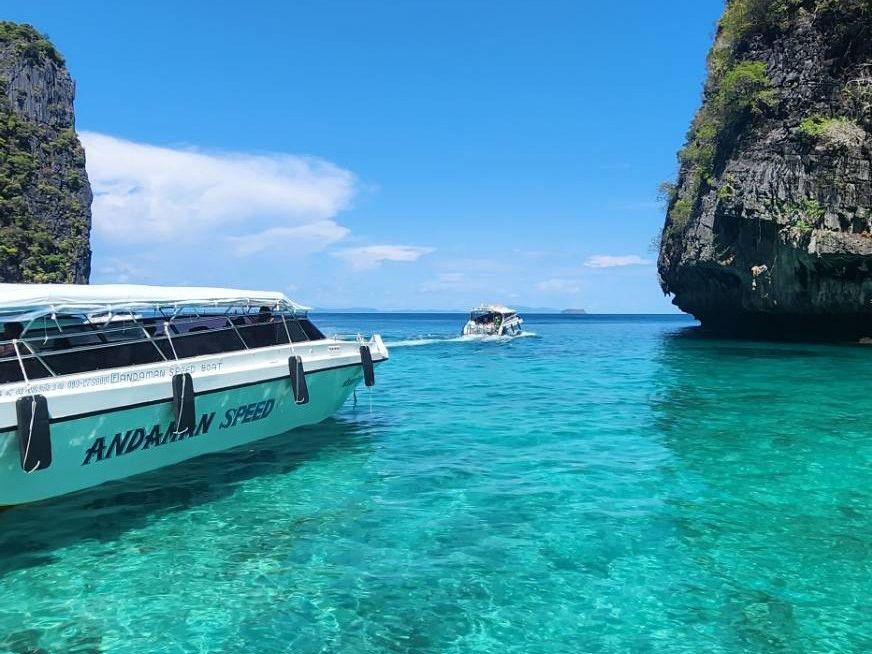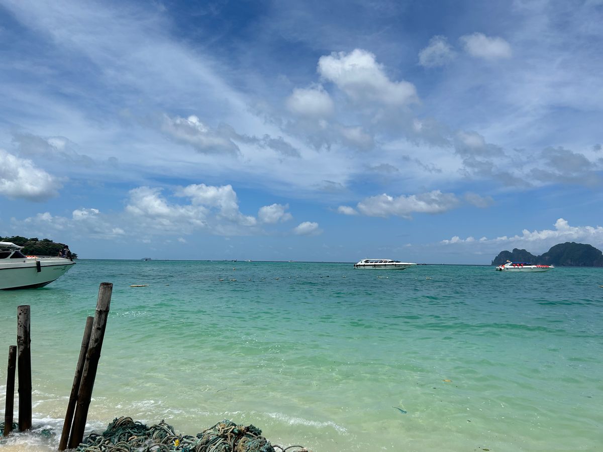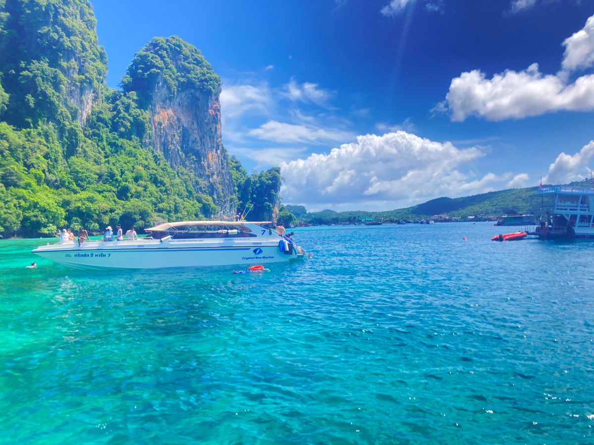 雨季にプーケットへ旅行に行きましたが、運良く晴れてました!(むしろ暑いくらい)ホテルまで送迎バスが来てくれて、港まで送ってくれます。着いたら大きな待合室で10分ほど待機。コーヒーやパンなどの軽食を食べながら待ちます。日本語ガイドさんを付けていたのでその人の案内で船に向かい、今回のツアーの説明を受けたら、いざ出航!参加者は日本人も数組ですが、ほとんどは現地の家族や、他の国の観光客でした。ツアーはシュノーケリングがメインで、寄った島でお酒やトウモロコシなどの屋台の食べ物を買うこともできます。とにかく晴れた日のピピ島はまさに島巡りに最高です!ランチもタイ料理をビュッフェで食べることができて、グリーンカレーはめっちゃ美味しかったです!プーケットに行った際は是非晴れの日に合わせてピピ島に行ってみてください!