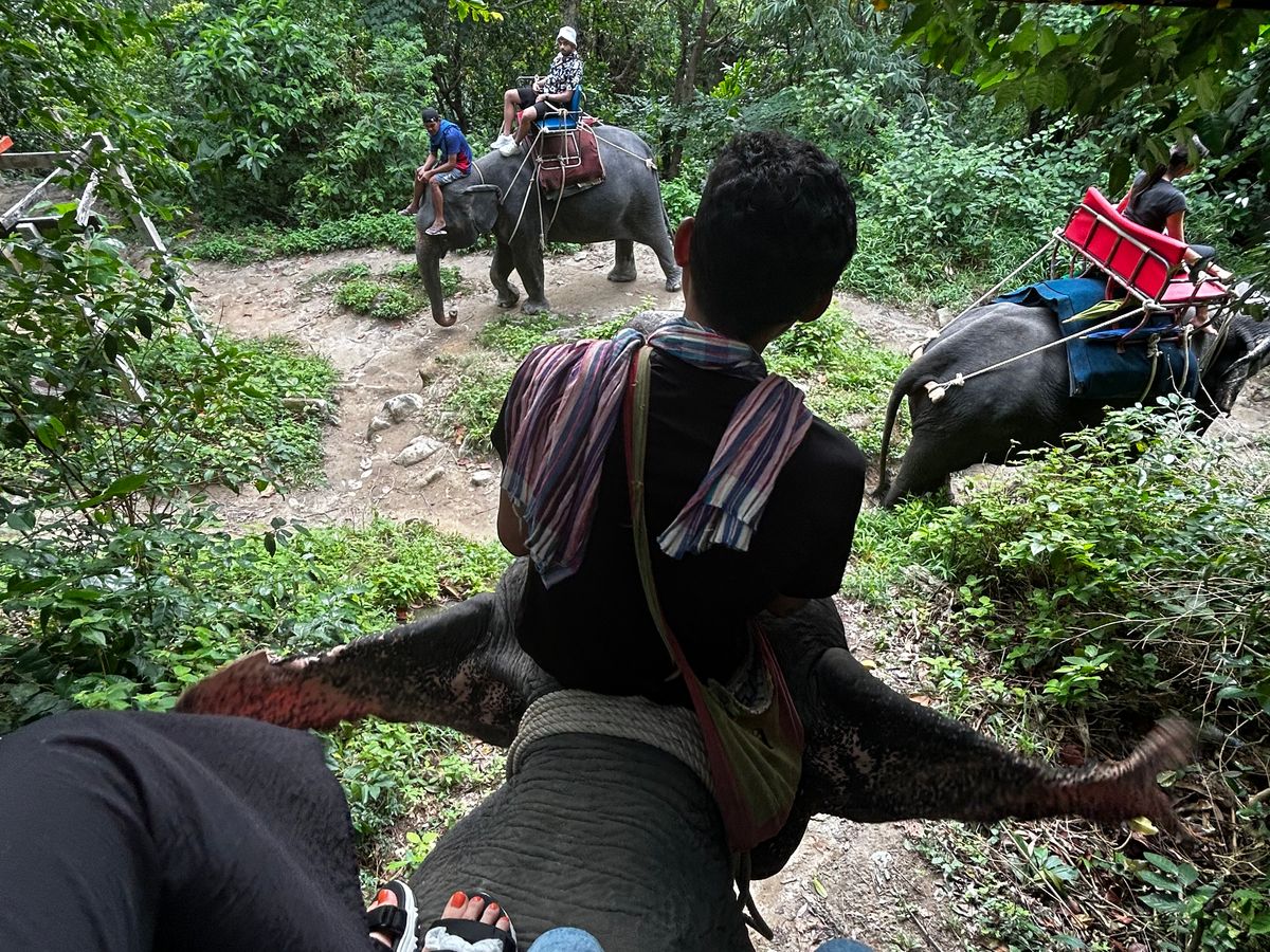 待ち時間はあったけれど、とても愉快なゾウ使いがゾウを運転(?)してくれました!電話しながらゾウの糞を投げてるムエタイニキがキマってましたi love Thailand