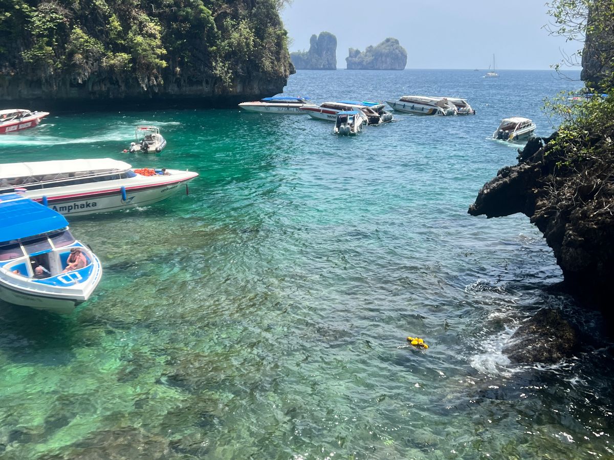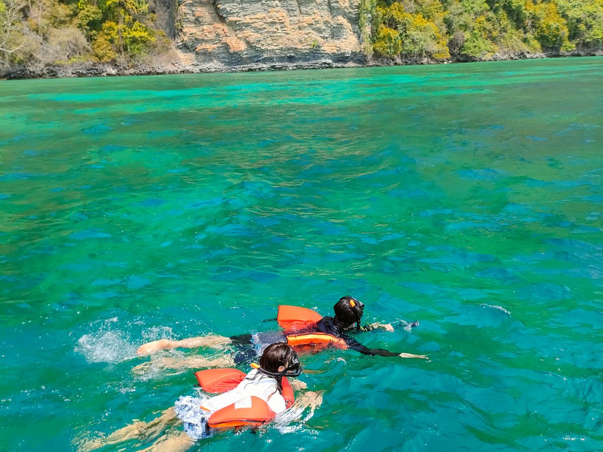 海況にも恵まれ、ゴールドシートにしていたこともあり、ゆったり快適でした。船室でのソフトドリンクやお菓子や果物のサービスがあったのも良かったです。シュノーケリングのための国立公園利用料金が乗船前の前払いだと半額になっていました。景色やシュノーケリングの海の中はきれいではありましたが、期待しすぎていたため、少し残念ではありました。ランチビュッフェは、主にタイ料理を選んで食べていましたが、とても美味しかったです。あまり時間はありませんでしたが、レストラン近くのピピドン島のビーチもとてもきれいでした。1日のんびり過ごすには良いツアーだと思いました。