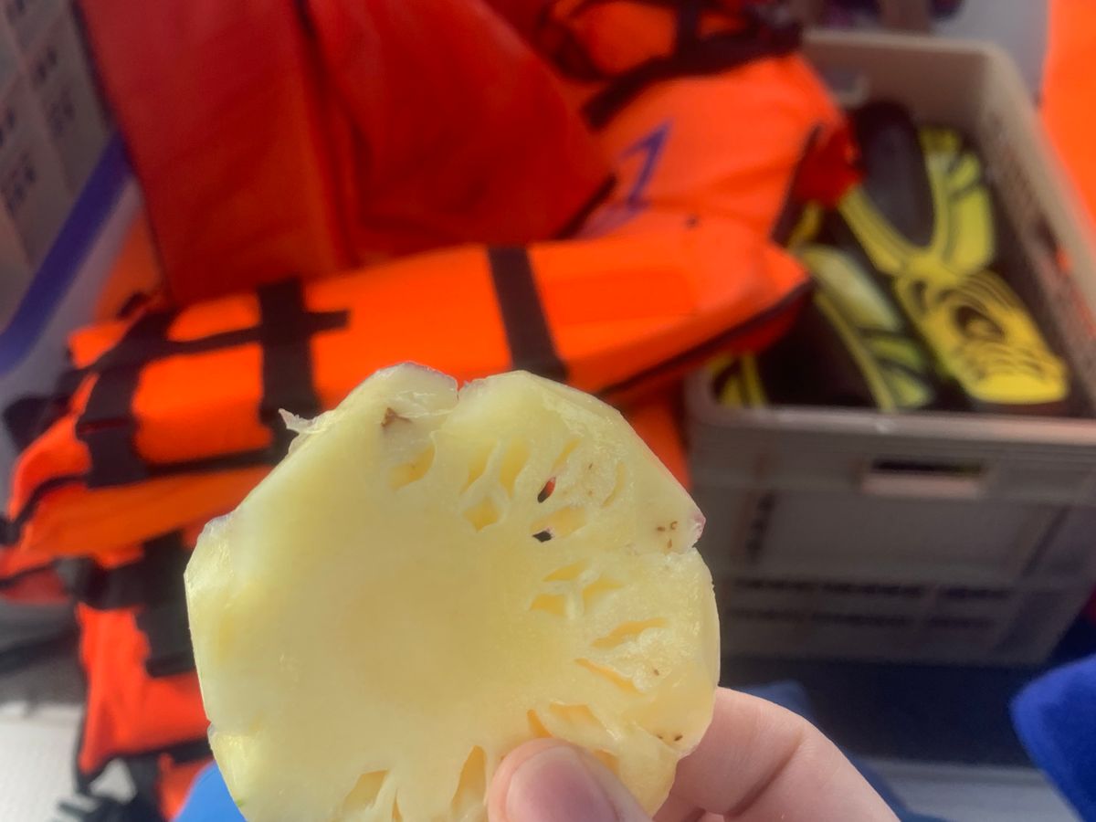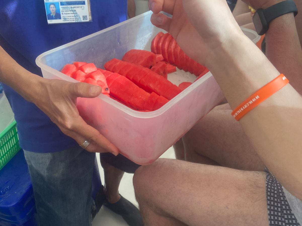 帰りの船中では、スイカとパイナップルも出していただきました。