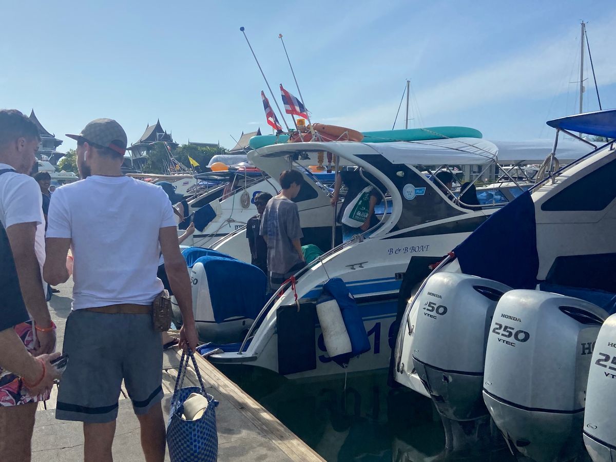 プーケットの港に到着後、コーヒーやトースト、お菓子、果物など軽食のビュッフェを45分ほどいただき、その後ガイドさんの説明を聞いてスピードボートへ乗車。