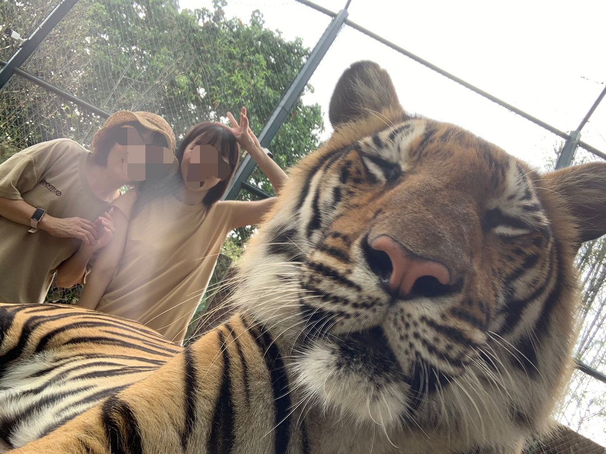 初めてのプーケット、母娘旅行は満喫できるプランを申込みました。8:45ピックアップ予定と書いてあったのですが、8:30過ぎにはジョーさんというドライバーさんが待っていてくれました。ツアーの最初は象乗りです。早めに出発したので、順番も1番がとれました。象さん達は、本当に良い子達。申し訳ないくらい色々なポーズをとってくれます。専属のカメラマンも付くので、一眼レフで撮ったデータは、スマホに全部移してくれます。着替えを済ませて車に戻ると、ジョーさんが車内で使えるWi-Fiを設定してくれて、ミネラルウォーターを差入れしてくれました。次はタイガーキングダムです。受付っぽいところで、タイガー達と撮る写真のプランを選び支払いを済ませます。私達は、大寅、中寅、チーターのプランを選びました。これが結構高いかも…入口で日本語の注意事項を確認し、中に入ると係の人が、それぞれの待ち時間を見ながら行き先を教えてくれます。ここでも係のお兄さん達が沢山写真や動画を撮ってくれました。ジョーさんにピックアップの時間を言われていなかったので、ゆっくり時間をかけて見学できて大満足!次の民族衣装の撮影では、タイの民族衣装の色や柄、頭の飾りが選べます。係のお姉さんが着付けとヘアセットをしてくれて、撮影スタート。私達のスマホでお姉さんが写真を撮りながら、メチャメチャ盛り上げてくれていました。(笑)プランに組み込まれているお昼のタイ風ラーメンは、現地で麺の種類と辛さが選べます。食後は、プーケットオールドタウンです。ここで初めてジョーさんからピックアップの時間指定をされました。交通渋滞がひどく、車を長時間停められないみたいです。オールドタウンの最後に雨が降り出し、次のワットシャロン見学をどうしようかな思っていると、すかさず車内に用意してあった傘を差し出してくれるジョーさん。最高です!プロンプト岬に到着する頃には雨もあがり、傘無しで観光できました。最後は、SWEET TALKのデザートタイム。アイスを食べて、ホテルまで送ってもらって、ツアー終了です。仕事とは言え、気遣いもあり、アナウンスも的確で、とても良いドライバーさんだったので、感謝の意を伝え、チップを多めに渡して別れました。英語がわからないので、心配な部分もあったのですが、全く問題ありませんでした。今度は民族衣装を着て、オールドタウン散策なんていうのがあれば参加してみたいです。
