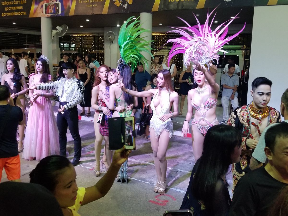 所在地が街はずれのようなところで、送迎付きを選択して正解。ショーは圧巻の人海戦術で次々と美形が繰り出し、出し惜しみ一切ない大盤振る舞いが魅力。もちろん口パクでもなんでも構わない、見事なダンスと心和む笑顔で満足です。ただ、パタヤの「ティファニー」「アルカサール」で目が肥えたようで、新味は感じられませんでした。終演後のツーショットは彼らの大切な収入源で、チップをケチってはいけません。チップが嫌なら遠巻きに写真を撮ればよろしい。なんたって、送迎付きの帰りもバス№で全く無駄に待つ必要なく、何台ものサイモン専用車でスムースに帰ることが出来たのは驚きでした。