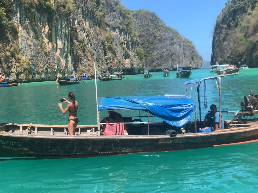 現地での船への乗船は、400人を超える規模でしたが、プランがゴールドシートだったので、マッサージチェア付きのシートにフリードリンク、船上への出入りなど、1番上のランクだったのでゆったりと快適な船の旅でした。ピピ島に着くまでにプランの選択でシュノーケリングを選びました。日程の詳細では、モンキー島の観光とありますが、海の上でのシュノーケリングはロープで囲まれた所だけといわれ、モンキー島には全く行けませんでした。シュノーケリングの方を選ぶと、ロングテールボートに乗る事ができませんでした。その他に関しては、全く快適でいい観光が出来ました。