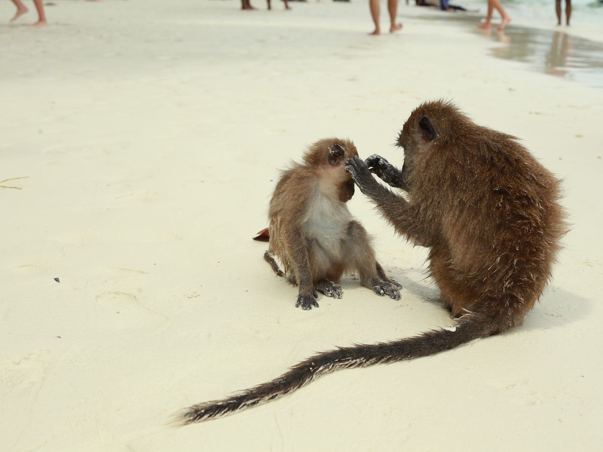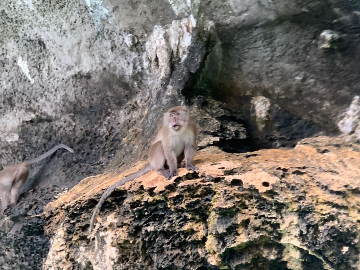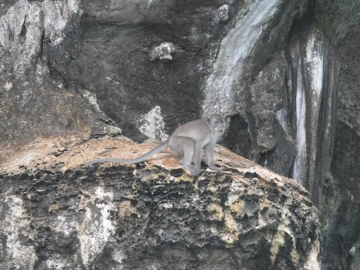 そしてピピ島周辺に到着。モンキービーチでは野生のサルがお出迎え。
