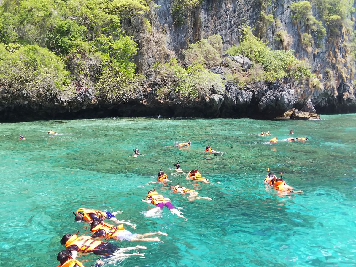 ピピ・レイ島で、船上から海へダイブして遊びましたが、インスタ映えを狙った?方達数名が浅瀬に勝手に移動され、足を貝で切られてましたねー。慣れない環境では勝手な行動は慎むべし!