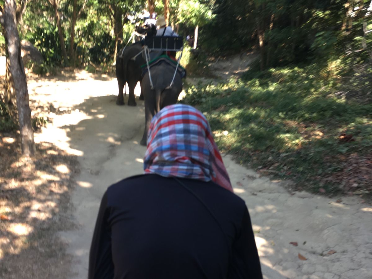 一旦、に乗るとそこからは、像の後頭部とお尻しか見えず、本当にに乗っているという実感がわかなかったが、使いの方が、から降りて記念写真を撮ってくれたのは良かった。