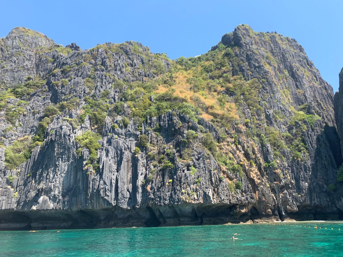 ピレーラグーンではシュノーケリングではなく、ジャンピングをお楽しみいただく、されない方も神秘的な場所、そびえつ岩山の景色をお楽しみいただくお時間として