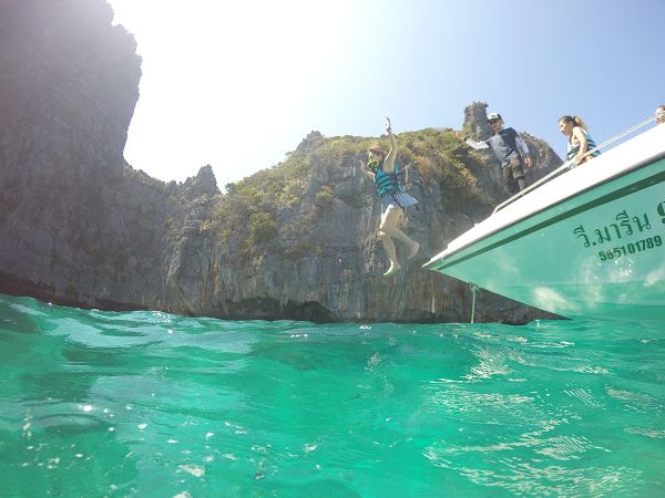 気になっていたスピードボードは波がなかったおかげで思ったより揺れませんでした。海も綺麗だし、スタッフもサービスが良いので文句なしです。一点、気になったのはピレラグーンを少し行ったところでのスノーケルですが、船上からジャンプして飛び込む場合、スノーケルマスクを装着してからが良いと思います。皆さん、スノーケルを海に投げ入れてからジャンプしてましたがその後、足が着く場所が浜まで行かないとなくその間は泳がなければいけません。途中、体力的にしんどくなった観光客のみなさんが足が着くサンゴの上で立ってマスクを着けていました。もちろんサンゴの上に立つのは禁止されていますので注意されますが、みんな故意ではなくしんどかったからだと思います。私は頑張って泳ぎましたが、浜まで遠く本当に体力がきつくてライフジャケットを着用すればよかったと後悔しました。途中、体力のない人は海に浮かぶロープに掴まったり、ライフジャケットを船上から放り投げてもらっていました。そういう点で飛び込む前に浜まで行かなないとマスクは着用できない、と言って欲しかったです。立ち泳ぎでつけられる人ならいいと思いますが……。