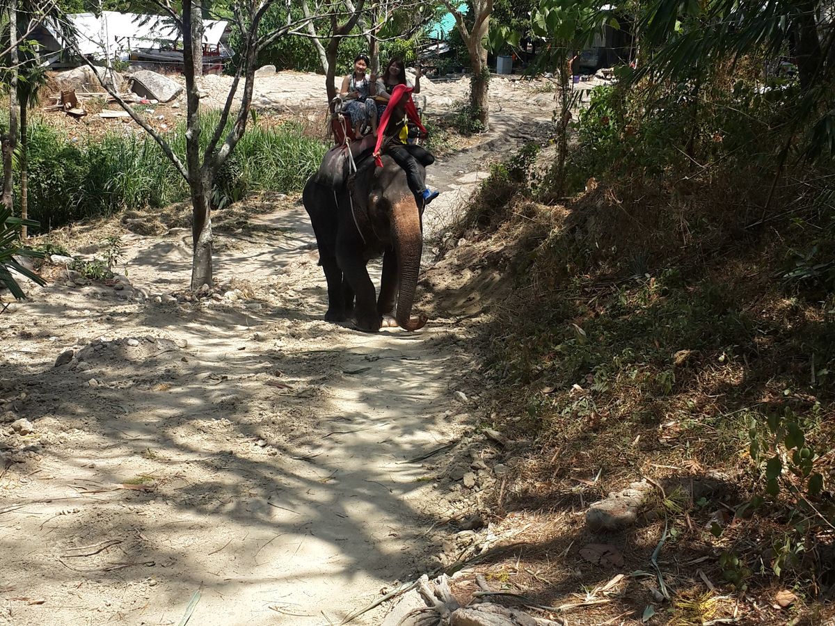 トゥクトゥクに乗ってプーケットの町並みを見ながら楽しく出発。運転手さんが途中で買い物あるからーと寄り道が一つありましたが、それもプーケットの人のよくある話と聞いていたので、のんびり到着。象使い?さんが海を背景に写真をたくさんとってくれて大満足でした。30分の短時間でしたが充分楽しめました。象さんもとても可愛いらしかったです。