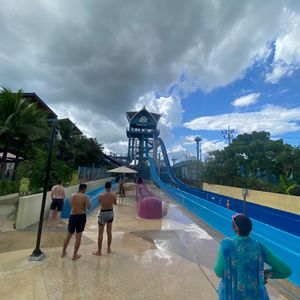 雨季で旅行期間中は雨続きでしたが、奇跡的にアンダマンダで遊ぶ日は朝から晴れで、最高の天気でした。小学生の子供2人と妻と家族で遊びに行きましたが、とにかく施設が広くて色んなプールがあり1日中遊び続けましたが、時間が全然足りなかったです。