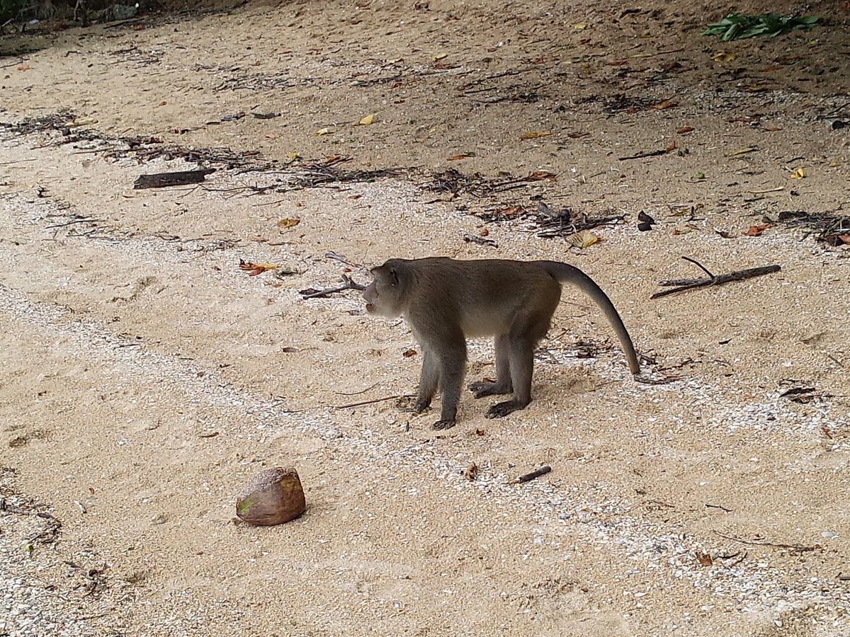 娘は水着を準議していたので、一部の参加者に交じってカヌーで移動する際に泳いだり、船が止まっているときに船の2階から海に飛び込んだり、子連れのサルにバナナをあげたり、普通のツアーでは体験できないことを満喫しました。