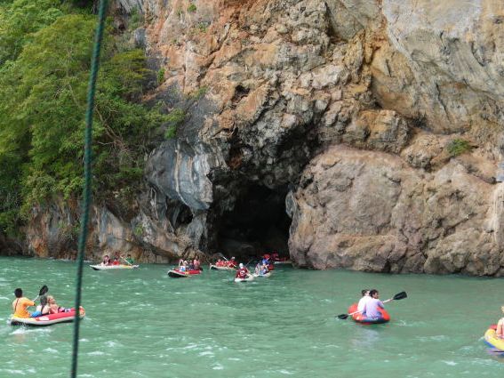 カヌーポイントにつくと晴れ、洞窟やサルのいる崖などの