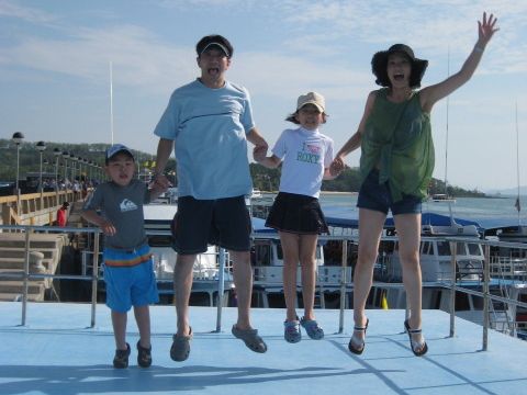 行きの船の屋上で子供達は「だるまさんが転んだ!」を始めだしあっとゆう間に到着!