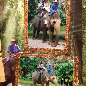 ゾウに乗る前に、記念写真を2枚400バーツでどうですか・・?