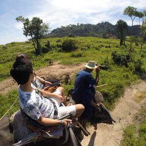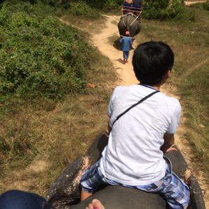 はじめは象の背中についているベンチに座って、ジャングルの中へと進んでいきます。意外と象の上は揺れが激しい!でもそれが楽しい!けっこう高いので、眺めがよく気持ちよかったです。日差しがとても強いので、日焼け止めは必須です。日よけの傘を用意してくれていたのはGOODでした。広場まででると、象使いの人が下に降りてたくさん写真をとってくれます(チップ必要)。1人は象の頭にすわらせてもらえ、長い間森の中を散策することができました。最高の思い出です!