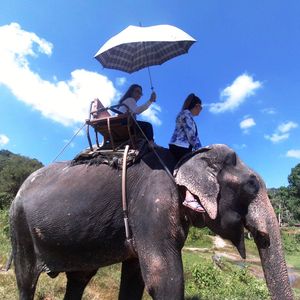 タイならでは象さんと触れ合わねばと参加しました。ピックアップされて象乗りの所まで結構時間かかりました。2.5時間と書かれてましたが実際はピックアップの時間からホテル送り(ショッピングセンターで降ろしてもらいましたが)まで4時間かかりました。時間に余裕もって参加されたが良いと思います。日差しが強かったけど傘も貸してくれました。象さんに乗った感じはゆっさゆっさで見晴らし良かったです。60分コースにしたけど30分で良かったかな(;・∀・)象に乗る事なんて滅多にないしいい経験になり楽しかったです