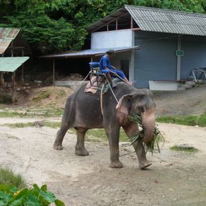 始めは小象の芸をみたり、餌(50B)をあげたり写真を撮ったり、本当に可愛らしかったです。そのあと大人のゾウの背中に乗せてもらいトレッキングへ。