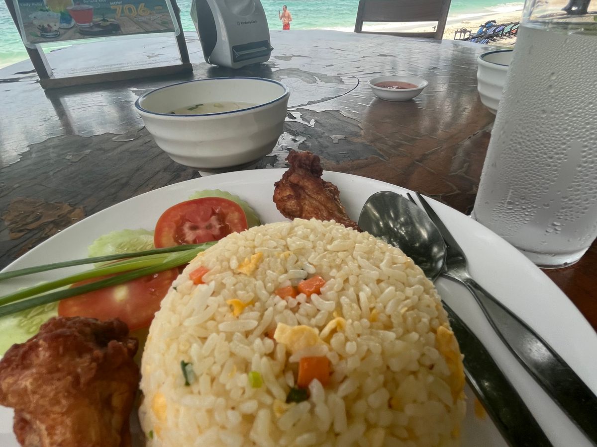 少し濁ってはいましたが、白い砂浜でとても綺麗なビーチでした。ビーチチェアやシュノーケルも貸してもらえます。