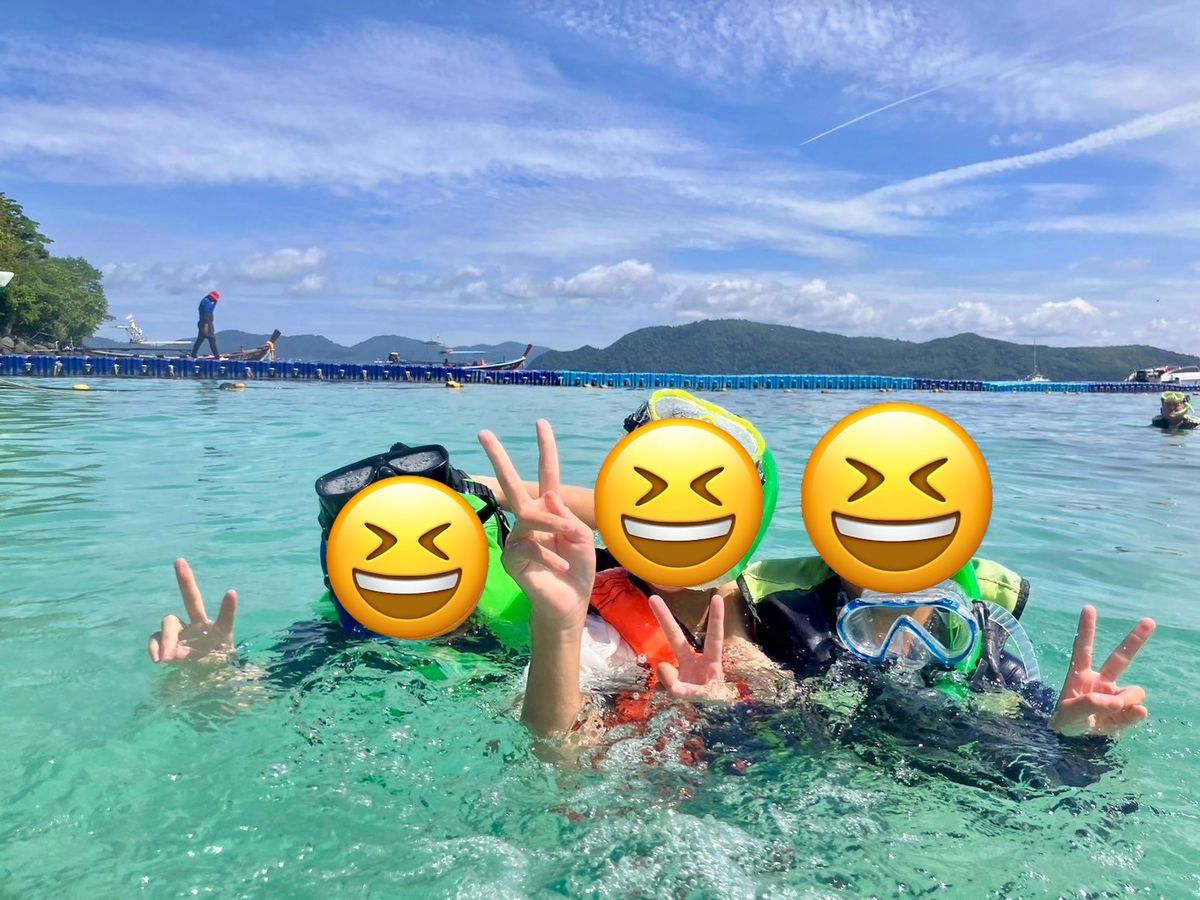 酔い止めを飲んで乗ったスピードボートは、天気が良かったお陰で揺れも気にならず、風と日差しを受け爽快でした。複数箇所をテンポよく巡り、途中シュノーケリングや泳ぐポイントが3箇所各30分程度と、最後のカイ島で遊泳時間が30分ほどあり、海でたっぷり遊んだ感がありました。