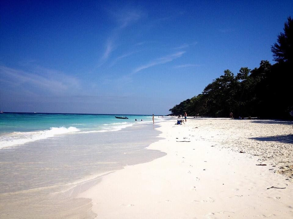 年末だったからかも知れませんが、スピードボートはかなり混み合ってました。約1時間半で1つ目の島へ到着。No.5でシュノーケルを約40分ほど楽しみました。透明度がかなり高いので下まではっきり見えました。シュノーケルの後はNo.4へ。ここで1泊ツアー参加の人達は泊まりの受付の為に別行動になりました。No.4はビーチがとてもきれいでした。パウダーサンドと透明度の高い海は今回まわった島の中で1番だったと思います。ここで昼食を頂きました。昼食はビュッフェ形式でパスタや肉などがありました。ここのツアー会社はアイスクリームやジュースなどもありました。昼食後は写真を撮ったり、ビーチでのんびりしている人が多かったです。