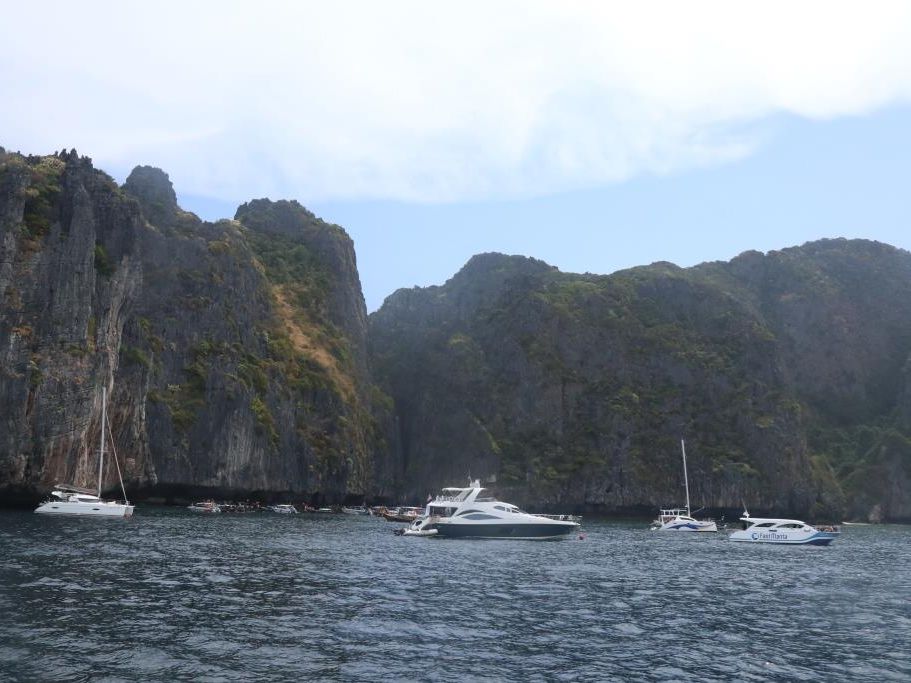 ピピ諸島まで約2時間弱(小型スピードボートは1時間)綺麗な島に到着しましたが、大型船は島から離れたところまでしか近寄れず、白いビーチもコバルトブルーの海も望遠でしか見れずにガッカリしました。