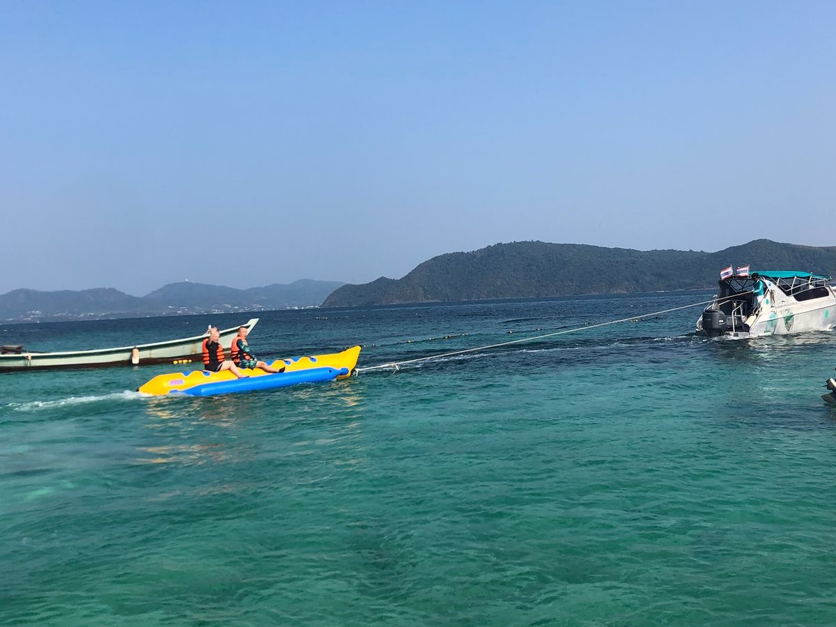 意外とバナナボートは楽しかった。結構遠くまで行くのでスリルがありました。透明カヤックも思っていたよりずっと楽しかった。