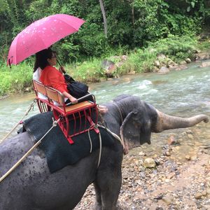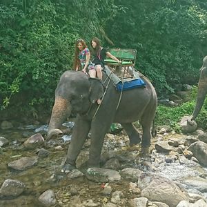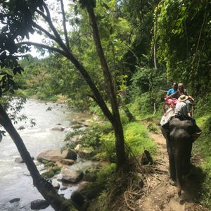 これらをする場所までに凄い時間がかかりますが、時間をかけてでも行くべきです!休憩地点で通る、猿だらけの岩場、滝などもすごく良かったです!始めは象に乗ることから始まります。百パーツで写真も撮ってくれますよ!それから、ジップラインをして、お昼をとってラフティングの流れです!ラフティングは、水の量も良くてスリル満点です。外国人がたくさんいて乗りも良く楽しく参加できました!車でかなり山奥まで行くので、酔いが激しい人は酔い止め持って行ったほうがいいですよ!