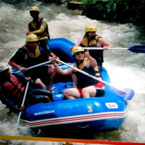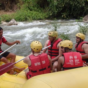 ラフティングは、皆さん書いてある通り、雨期でない限り上流の水門を開けて、一斉に4~50のゴムボートが下るので、ごっちゃごちゃといえばその通りですが、いろんな国からの参加で多国籍川下りは結構面白いですよ。スタッフも別会社ながら、水かけあったり、下っている途中もカエル投げ入れたり、ぎゃーぎゃーと盛り上がって楽しかったです。