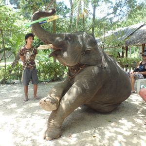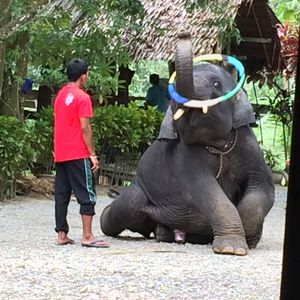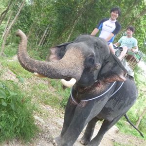 ゾウ使いに少しチップを渡しゾウさんの頭に乗せてもらいました。さらに写真を撮ってもらいとてもいい思い出になりました。タイでのゾウ乗りは2回目です このオプションのゾウは、少し小型です。 もしアフリカゾウの大型を希望の方はほかのツーアーがいいかもしれませんね。