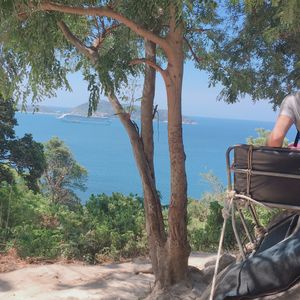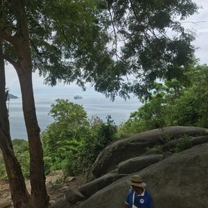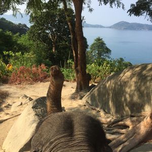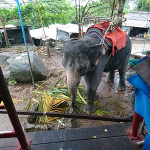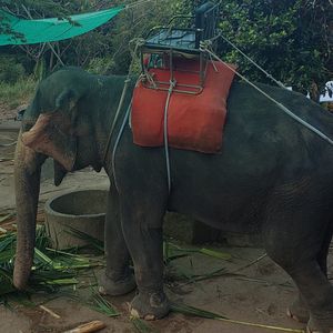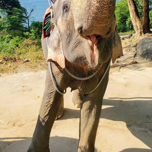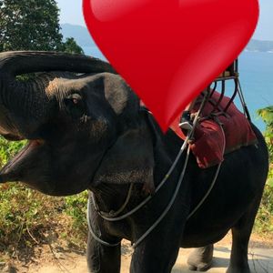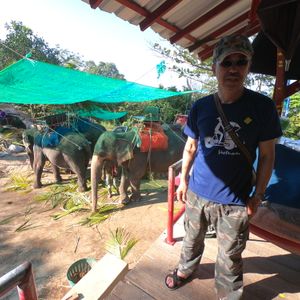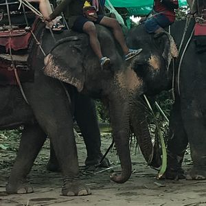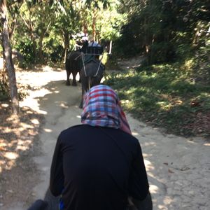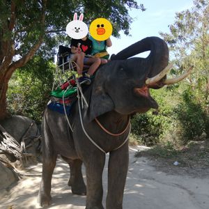 最初に着いた時から、象さんが4,5頭お客さん乗せて餌を食べていて、檻の無い象さんに感動しました着いたらチェックインして、直ぐ乗れました。早めの時間の方が待たなくていいみたいです。象さんのエサ、サトウキビを100Bで買いました。象さんの背中を借りて座席に着きます。ワクワクします。最初着いた時、海を見ながら象ライドなのに、海が無いなぁと思ってたら、登る、登る!こんな大きな体で、こんな細い道登れるんだーと思いながら、頂上辺りに着くと、眼下に海が見えて、そこで象使いの方が記念写真を、手持ちのi phonで撮ってくれました坂道を下る時のスリリングさも良かったです