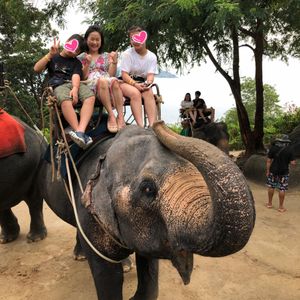 家族で初めて象乗りを体験しました。階段、坂道を登ったり降りたりして少し怖かった(そう感じるのは親だけ)ですが、子供たちはスリルがあって楽しかったそうです。また乗りたいと言っていました。写真撮影は事前に頼むと250バーツといわれたので頼みませんでしたが、結局、象乗り散歩の途中で象を先導してくれる人が私の携帯で写真を撮ってくれたので、満足でした。
