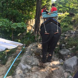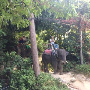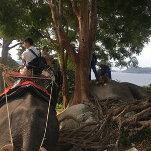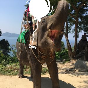 ホテルにチェックインするまでの時間で楽しみたいと、朝一番の時間で予約しました。ピックアップも時間通り、パトンビーチからは車で15分ほどで着きました。程なくして呼ばれ、いざライディング。山道なので道のアップダウンが結構激しく、筋肉使います。海の見えるところまで連れて行ってもらい、そこで写真タイム。たくさん撮ってくれました。帰りの途中で象牙のアクセサリーを見せられましたが、断るとあっさりしまってくれ、全然嫌な気分にはなりませんでした。降りてからも特にチップを求められることはなく、追加で払ったのは最初のエサ代100バーツのみでした。