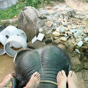 子象に触れる体験もよかったのですが、ツアー写真では広々した所でしたが実際は柵内で触れるだけでした。外で写真のようにゆっくり出来たらいいと思いました。