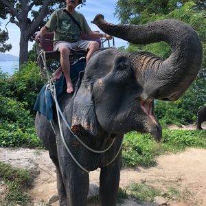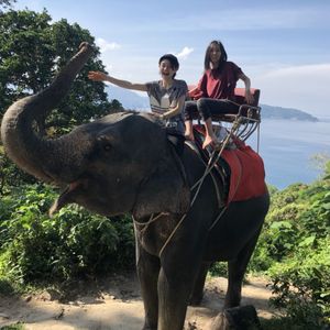 2017年12月4日から3泊5日のプーケット男2人旅。滞在3日目に象乗り体験してきました。14:30から30分の象乗り予約でパトン地区中心のホテルに14時にトゥクトゥクのような車が迎えに来て約15分で現地に到着。場所は山の中で、象が数頭いましたが、一番多大きい象に二人で乗り出発。「こんな急な山の坂道登れるの?大丈夫かな?」と思うほどの坂道を登り始めました。ノロノロと歩いたり、途中何度も立ち止まりながら海の見える折り返し地点に到着。そこで象乗りのおじさんが何十枚も写真を撮ってくれました。スタート地点に戻りおじさんにチップ100バーツ渡すと、また象と一緒に写真を撮ってくれました。同行の友人も大喜び。スリルもあるし、象はおとなしくかわいいし乗り心地も良く、そんなに時間もとらないし、往復の送迎つきで手頃な価格なので、プーケット行かれたらに一度は体験してほしいです。いい思い出になること間違いありません。