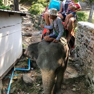 象が歩く場所は狭く、こんな所本当に歩けるの⁉︎って感じの所を歩きます。怖いので下は見ない方がいいです。途中子供を象の頭に乗せてくれますが、ベルトも何も無い状態で歩かせるので、親子共々焦りました。