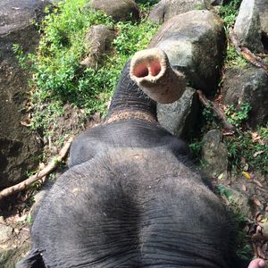 ゾウさんはとてもお利口で象使いの言うことをよく聞いていました。ゾウさんがいるところはフンが大量に放置され山になっており、かなり劣悪な環境で家族経営なのか子どもや女性が近くで生活していました。ゾウさんは鉄製の鎖を首につけられて、ゾウ使いは斧を持っていてそれでしつけしてるようでした。私たちがゾウに乗っている間ゾウ使いはタバコを吸いながらゾウに乗り、タバコの灰がゾウの背中に落ちてました。。。狭い岩と岩の間を通らされて、体を擦ってました。悲惨な動物虐待を目の当たりにしゾウ乗りに参加した自分を無知で恥ずかしく思いました。観光客がゾウに乗るかぎり、日本でペットショップで動物を飼うかぎり動物虐待はなくならないと感じました。幸せなゾウが増えることを切に願います。