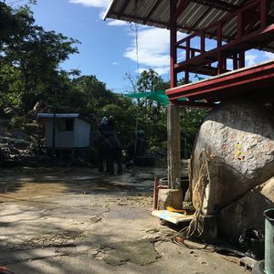 ゾウの水浴びが少しかかります。汚れてもいい服装での参加をおすすめ。山道を登って降りて 、子ゾウに触れ合って最高に楽しいです。