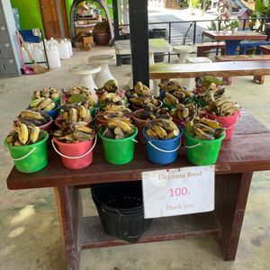 象の餌になるバナナかサトウキビが現金で買える。(100バーツ?)道中で餌をあげることが可能。